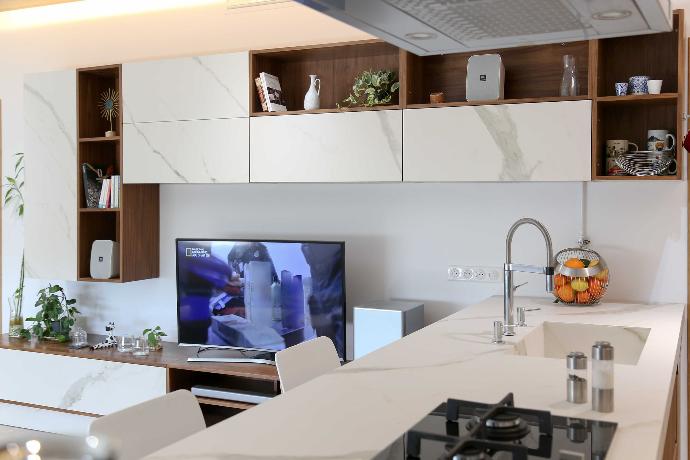 VEN offre la solution idéale pour la conception et la rénovation de l’espace de la cuisine à base des plaques en grès cérame grand format.