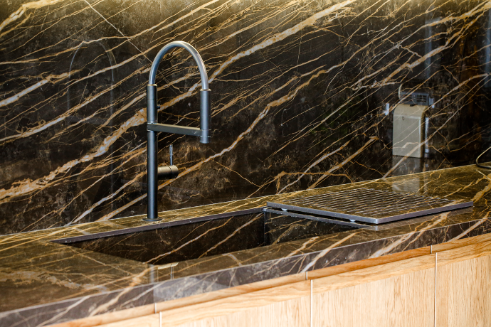 VEN offre la solution idéale pour la conception et la rénovation de l’espace de la cuisine à base des plaques en grès cérame grand format.